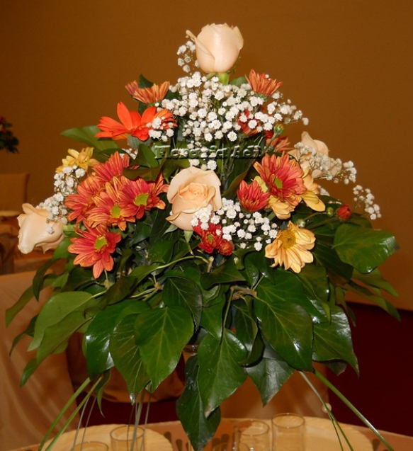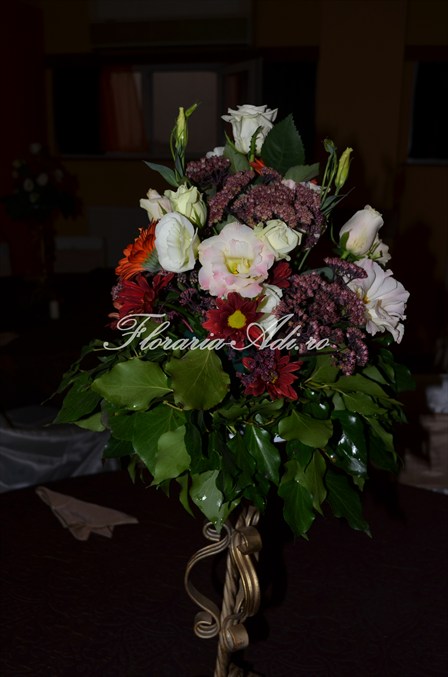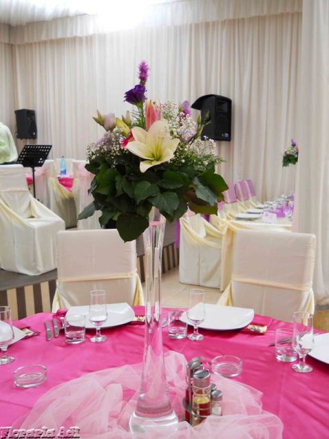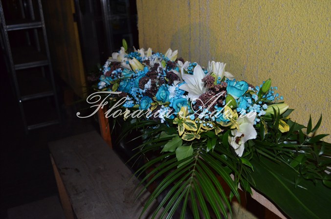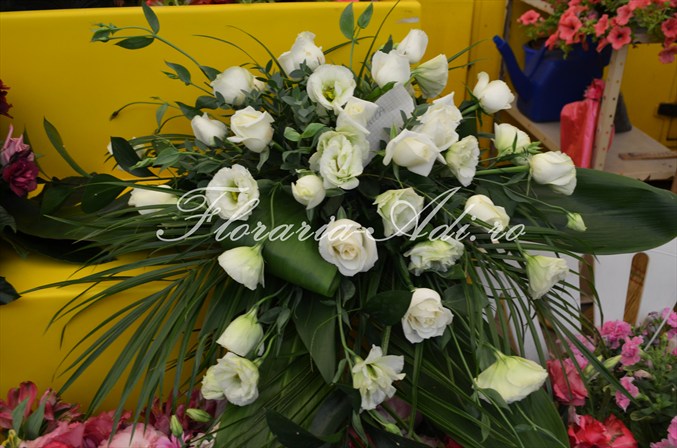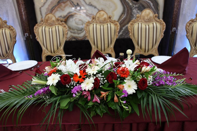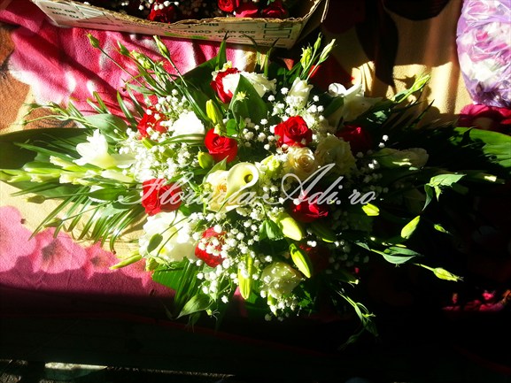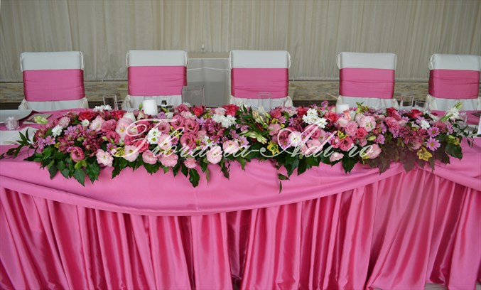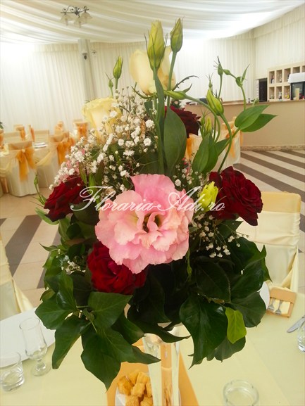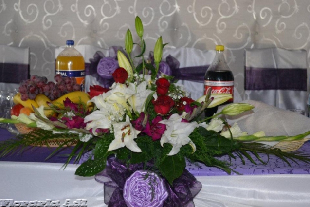 Realizam aranjamente florale naturale pentru masa invitatilor, aranjamente florale naturale pentru masa mirilor, aranjamente deosebite precum ghirlandele, aranjamente pentru masina iar la cererea clientului orice aranjament floral ce se poate realiza din flori naturale.